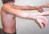 In the "empty can" test (Figure 2), the patient abducts both arms 90 degrees laterally, then adducts them 20 degrees to the frontal plane, with thumbs turned down. The examiner resists further abduction to test strength and watches for signs of pain.