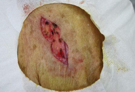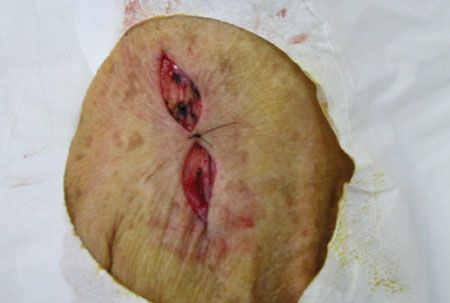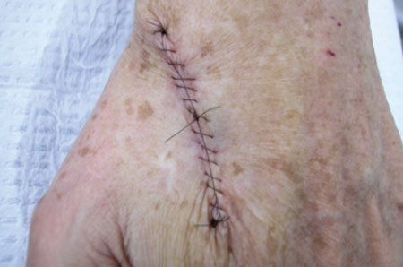 Figure 5 – Final nylon closure is achieved. An interlocking suture technique is shown here, but simple interrupted sutures may be used.