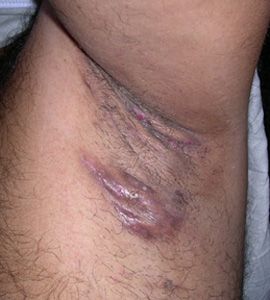 A 28-year-old man presents with “never-ending boils” under both arms and, occasionally, in the groin. Repeated courses of antibiotics have failed to resolve this problem.