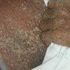 ).These patients, who are usually debilitated or immunocompromised, experience little or no pruritus and therefore do not scratch. As a result, hundreds to millions of mites are free to multiply and to infest the skin; the infestation manifests as confluent crusted plaques topped by thick hyperkeratotic scales.