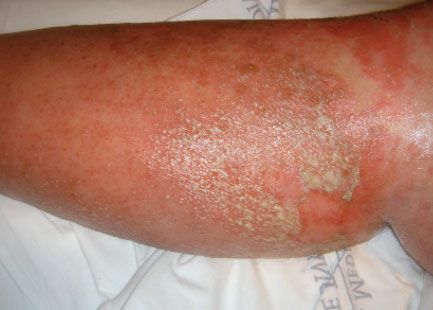 Figure 5 – Pustular psoriasis is characterized by pus-filled sterile blisters; the fluid contains white blood cells but no bacteria.
