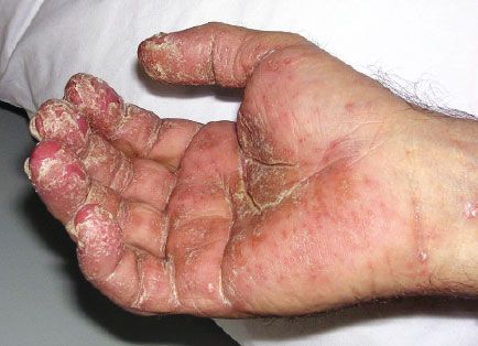 Figure 4 – Palmoplantar psoriasis is an uncommon form of the disease.