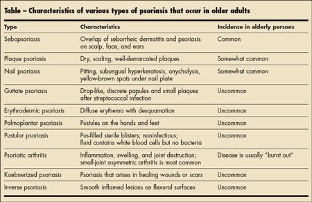 In a previous article in CONSULTANT, I outlined my approach to the treatment of psoriasis.2 In brief, psoriasis in elderly persons must be treated, but the treatment should be tailored to their needs. In older patients, I prefer to use mild therapies; therefore, I start treatment of limited plaque psoriasis with emollients and keratolytics, topical corticosteroids, and vitamin D analogues. If these are not effective, I prescribe coal tar, topical retinoids and, less frequently, dithranol. For more severe disease, I prefer to use narrowband UV-B treatment 3 times a week. I sometimes use biologic therapies, such as etanercept, infliximab, or adalimumab. I avoid tumor necrosis factor α blockers in patients with heart disease, and I also avoid methotrexate in patients with liver disease.