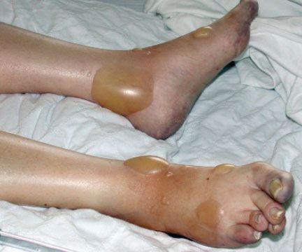 Figure 9 – Localized vesicular bullous pemphigoid occurred on the feet and ankles of this patient.