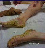 A 38-year-old man presented with a 2-week history of mental status changes and impaired memory. He also had a rash on both hands and feet that had been getting worse for the past few months. The rash was initially red and pruritic and then became scaly. There were 3 rounded purpuric lesions below the right knee, and bilateral toe nail onychomycosis. The patient was oriented to person and place but had difficulty with memory testing. Laboratory findings included a positive rapid plasma regain value. This patient was found to have neurosyphilis.