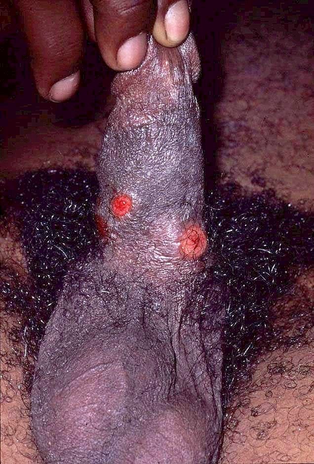 A 38-year-old man presented with multiple painful penile ulcerations, as well as tender, bilateral inguinal adenopathy.