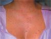 For several months, a 25-year-old woman has been bothered by a persistent, slightly pruritic acneiform eruption on the upper trunk and proximal arms. She has tried oral antibiotics, topical erythromycin, topical clindamycin, and topical benzoyl peroxide, but the eruption has not resolved. The patient is otherwise healthy and has taken the same oral contraceptive for years.
