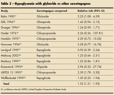 In a 2007 meta-analysis, glyburide was compared with other anti-diabetic medications, including insulin, to determine whether it was associated with a higher risk of hypoglycemia.4 The meta-analysis, which included 21 studies, revealed a 52% higher risk of hypoglycemia in patients receiving glyburide compared with those taking other insulin secretagogues. In addition, glyburide posed an 83% higher risk of hypoglycemia compared with other sulfonylureas.
