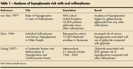 Studies have been conducted to determine which sulfonylureas are the safest and most effective. Because hypoglycemia is the chief adverse effect of sulfonylurea use, many studies have looked specifically at this phenomenon. Table 1 summarizes the results of some of these trials.