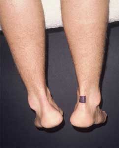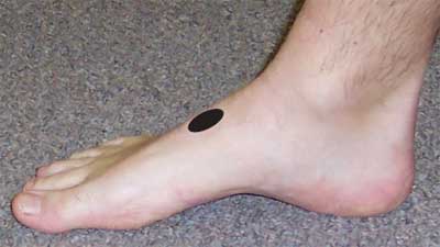 Achilles tendon injuries are common in persons who participate in a variety of summer sports activities, including running, baseball, softball, tennis, volleyball, and badminton. The Achilles tendon ruptures about 2.5 to 3 inches above its insertion into the calcaneus (marked). This, the "watershed area" of the tendon, has a tenuous blood supply, which makes it susceptible to rupture.