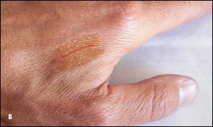 Tissue adhesive usually comes off on its own after 7 to 10 days. Advise patients not to apply antibiotic ointment over tissue adhesive; ointments can lead to premature breakdown of the closure. Also, for obvious reasons, instruct patients not to pick or pull at the adhesive when it eventually starts to fragment. As mentioned previously, a wound check to assess for dehiscence 2 days after closure is mandatory.
