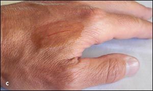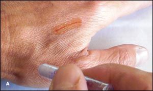 Wound tape is the closure method of choice for superficial skin flaps in elderly patients; attempting to suture in this setting is usually an exercise in futility because the suture often tears right through the frail skin. Note that wound tape can be used to bolster the edges of wounds in elderly patients that do require suturing. The tape is placed parallel to the wound; then stitches are placed through it to reduce the risk of the suture slicing through frail tissue.