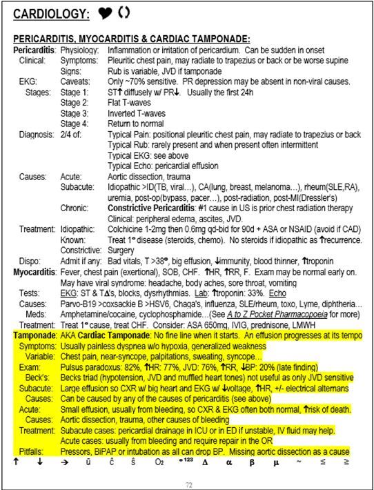 For additional information on cardiac tamponade, please click on Figure 2 above to see an excerpt from the Cardiology section of The Emergency Medicine 1-Minute Consult Pocketbook.