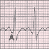 The patient in Case 1, a middle-aged man with apparent GI hemorrhage and narrow-complex tachycardia PEA, responded rapidly to bolus vasopressor (40 units of vasopressin) and volume expansion with normal saline and blood products. He developed a pulse, with rhythm as shown in Figure 4 (A)--a very rapid sinus tachycardia. Subsequent care revealed an actively bleeding gastric ulcer, which was cauterized. His cardiac arrest had resulted from hemorrhage with profound volume depletion and subsequent PEA. He was discharged from the hospital 2 weeks later with intact neurologic status and minimal personality change.