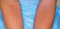 A presumed form of the disease, staphylococcal scarlet fever, presents with a rash that may be indistinguishable from streptococcal disease: diffuse, scarlatiniform, tender erythroderma, which is accentuated in the flexural areas but does not progress to blister formation. The Nikolsky sign may be absent. Strawberry tongue and palatal petechiae are absent. Unlike streptococcal scarlet fever, desquamation begins early in the disease course (by day 2) and is complete within a week. Cultures demonstrate Staphylococcus aureus. Treatment consists of systemic antibiotics, either orally, in cases of localized involvement, or parenterally, with a semisynthetic penicillinase- resistant penicillin. Gentle moistening and cleansing of the skin with Burrow solution or isotonic saline is recommended. An emollient can be applied to alleviate discomfort.