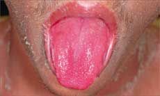Scarlet fever is caused by group A β-hemolytic streptococci, which elaborate 1 of the 3 erythrotoxins. The onset is acute and is characterized by fever, vomiting, headache, a toxic appearance, pharyngitis, chills, and occasionally abdominal pain. The rash appears within 12 to 48 hours of the fever onset. The tonsils are hyperemic and edematous and may be covered by gray-white exudates. As the erythrotoxic-mediated exanthema evolves, the tongue may become bright red (“strawberry tongue”) as seen in this patient. The soft palate and uvula are usually reddened and edematous; petechiae may be present on the soft palate.