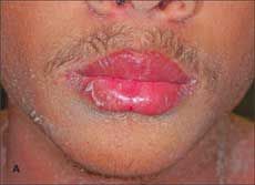 The patient has no sick contacts and does not take any medications. He states that he began using a new shampoo a week earlier; however, the rash does not involve his scalp. He has no history of hospitalizations or surgeries and is up-to-date with his immunizations.
