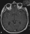 An MRI scan of the brain showed a focal low-signal area on T1-weighted images in the left occipital lobe in the area of the optic radiations. This area became uniformly more hyperintense in signal on T2-weighted images (E). No enhancement was seen after gadolinium-contrast dye injection or on diffusion-weighted imaging (F). These findings were consistent with an old left occipital ischemic infarction, which caused the right homonymous quadrantopsia. The infarction may have resulted from ischemia following blood loss during the farming accident, or it may have occurred during the protracted recovery period. Interestingly, the patient's recollection was that the vision loss had occurred in the superior left visual field and that he had recovered his vision completely.