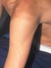 Figure 3An 11-year-old boy is brought by his mother to the pediatrician'soffice with a 1-day history of a rash on his shouldersand arms. His mother relates that he woke up withthe rash, and she was very concerned about how quicklyit appeared. The patient is a healthy boy who denies anyrecent illness, associated pruritus, trauma to the skin, oruse of any new products.Physical examination reveals macular, hyperpigmentedlesions on the boy's shoulders and upper arms. Theyappear in a similar pattern on both shoulders withoutvesiculation, petechiae, or bruising. The rest of the physicalexamination is normal.Because child abuse is suspected, photographs areobtained (