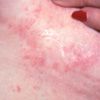 For the past month, a 67-year-old woman has had a pruritic rash under her left breast. She takes an antihypertensive and is otherwise healthy.