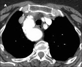 The patient was initially treated with an inhaled bronchodilator and scheduled for a barium swallow study and speech evaluation. However, before any further testing could be done, she returned with increasingly severe shortness of breath. She was no longer able to walk from her house to her car because of difficulty in breathing. She was referred for cardiothoracic surgery.
