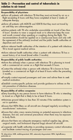 Travel recommendations related to screening, prevention, and management of tuberculosis are outlined in Tables 2 and 3.20