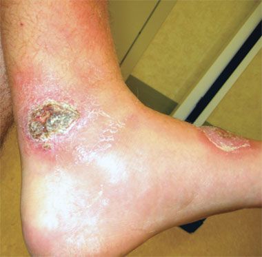 Figure 2 - New World cutaneous leishmaniasis caused by Leishmania major is characterized by painless, well-demarcated ulcers at the site of sand-fly bites.