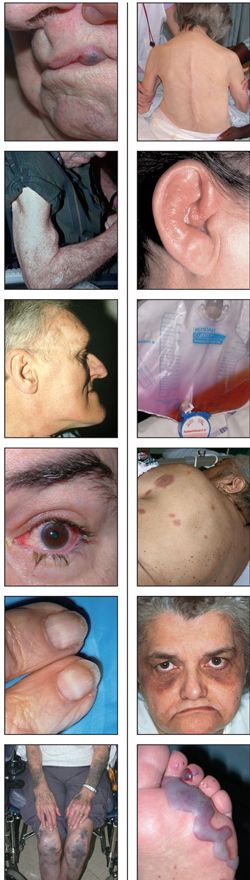 Favorite topics? Certainly, the man with acromegaly over the years5; he and his kind wife brought in snapshots from across the decades. HIV cases hold a special place in my spirit (those in references 6 through 10, for example) because this illness-even more so in the early years when treatments were few and feeble, and the stigma in society worse than now-so demands our best as both humans and professionals. The most challenging adults to treat include those with advanced HIV disease, and the frail demented elderly: Each has so many complex interactions between problems and between medicines that have to be thought out, hoping not to worsen one problem by attack on another. In both, manifestations of illness often differ from the classical description. We hope the images and columns have helped some readers find any such patients less alien, more familiar, and thus more readily treatable with the armamentarium developed throughout one’s whole antecedent clinical experience.