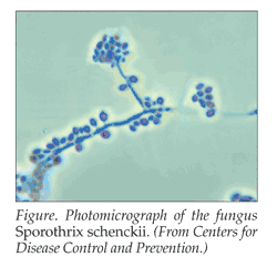 Sporotrichosis is a fungal infection caused by the dimorphic fungus Sporothrix schenckii (Figure). It has a worldwide distribution and is associated with soil, vegetation, and wood.