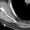 A CT scan can clearly identify a mediastinal mass obstructing the superior vena cava and, if intravenous contrast is injected in an upper extremity, can detect venous collaterals. Because of the accuracy of CT in visualizing the venous obstruction and in identifying the cause and-in the case of malignancy-the extent of the disease, venography is rarely used for diagnosis of superior vena cava syndrome.