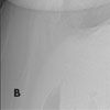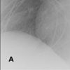 Both views of the chest reveal a very large lesion in the mediastinum on the right that displaces the trachea posteriorly (A and B, arrows). To investigate further, a CT scan of the chest is ordered, including the supraclavicular lesion on the right.