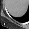 The lesion in the right supraclavicular region is visible on the superior aspect of the study (G, arrow). Images in lung windows, surprisingly, are unrevealing, as are images of the more cephalad aspects of the neck.
