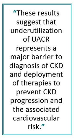 “Given the crucial role of albuminuria for risk stratification and determining indicated treatments in CKD our results reinforce the need for concerted efforts to increase the use of albuminuria testing for enhanced kidney and cardiovascular preventive care,” investigators said.