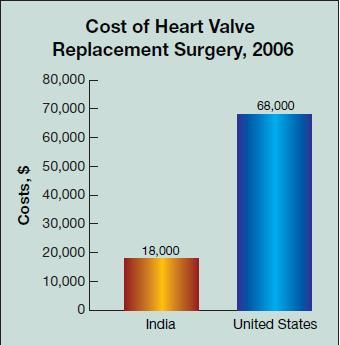 Figure. The cost of heart valve replacement surgery in the United States (with a 3-day hospital stay) is $68,000, compared with $18,000 in India. This figure includes a 10-day hospital stay, 24-hour individualized nursing care, and travel expenses for the patient and a companion. Source: Business Insurance. US Employers Try Overseas Health Care in Bid to Slash Costs; 2006. Available at: www. businessinsurance.com/cgibin/printStory.pl?article_id+19330&a=a&bt=medical+tourism.