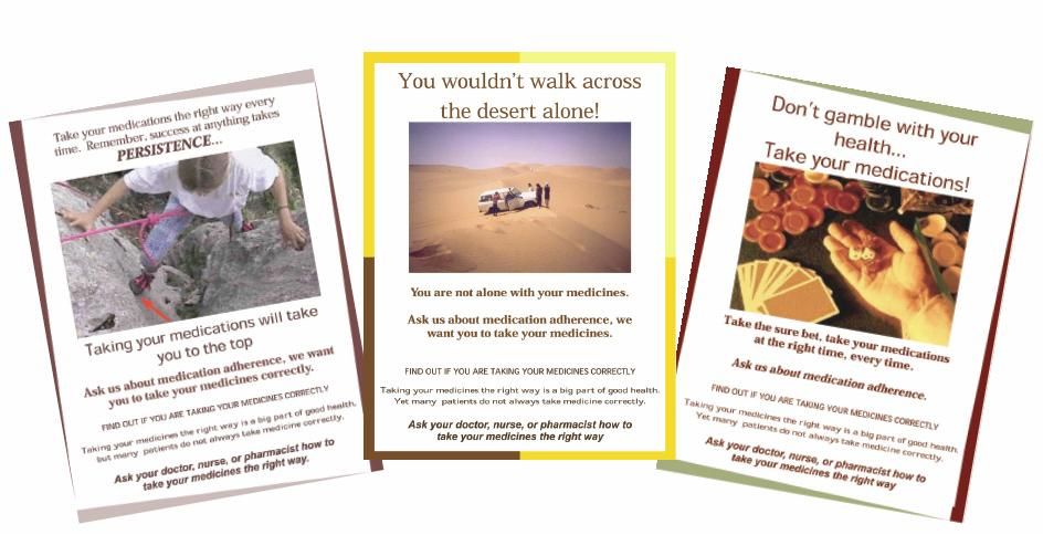 Figure 1. Three of the 6 posters designed to improve medication adherence that were displayed at the Brooke Army Medical Center Family Medicine Service Clinic.