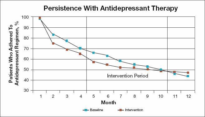 Lack of adherence by patients for whom antidepressant medications are prescribed is common. Hansen and Kessing1 thoroughly reviewed the issue of patient adherence to antidepressant therapies. They found that many patients with depression do not follow their prescribed treatment regimens, with rates of adherence generally lower than those with other types of therapies. In randomized trials of acute therapy for depression, 20% to 40% of patients discontinue therapy before 6 months. In epidemiological trials, more than 50% of patients stop therapy before 6 months.1