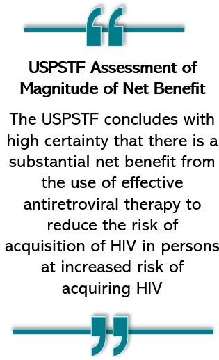 PrEP should be recommended only for individuals at increased risk of acquiring HIV, according to the USPSTF. Sexual activity and injection drug use are the 2 primary vectors for HIV infection, making it essential that clinicians discuss sexual and injection drug use history with all patients. It is also important, say the recommendation authors, to inform persons at high risk that HIV is preventable which could facilitate future conversations about PrEP and other forms of prophylaxis.