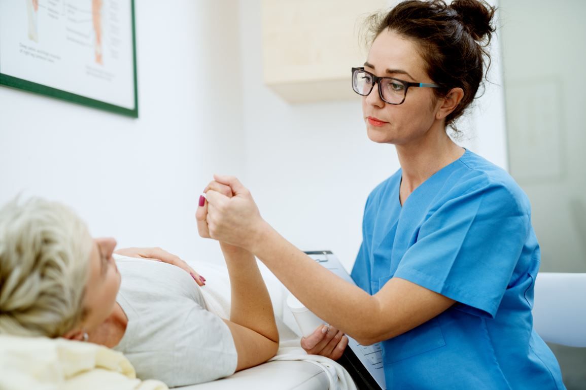 A 62-year-old woman with diabetes comes to the emergency department for post-menopausal vaginal bleeding, about 2 pads/day, and lower abdominal “pressure.” She denies vomiting, fever, diarrhea, or other symptoms. She recently had a UTI and is still on Bactrim but takes does not take anticoagulants.
