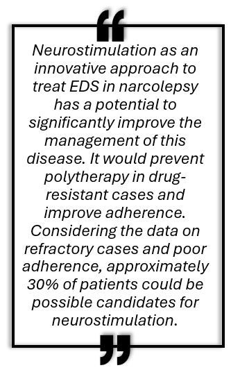 “Neurostimulation as an innovative approach to treat EDS in narcolepsy has a potential to significantly improve the management of this disease. It would prevent polytherapy in drug-resistant cases and improve adherence,” Groppa et al noted. “Considering the data on refractory cases and poor adherence, approximately 30% of patients could be possible candidates for neurostimulation. In addition, teratogenic effects of medication could be avoided by the use of neurostimulation in pregnancy. Further investigation of neurostimulation in narcolepsy could provide new ways to treat this disease and to search for synergistic effects of medication in combination with neurostimulation as it is already being done in epilepsy.”