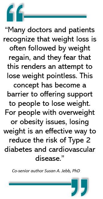 “Many doctors and patients recognize that weight loss is often followed by weight regain, and they fear that this renders an attempt to lose weight pointless,” said senior investigator Susan A. Jebb, PhD, a professor of diet and population health at the University of Oxford in the United Kingdom, in a news release. “This concept has become a barrier to offering support to people to lose weight. For people with overweight or obesity issues, losing weight is an effective way to reduce the risk of Type 2 diabetes and cardiovascular disease.”