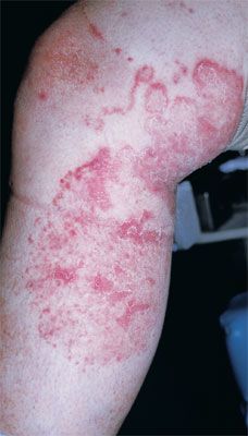 After 6 weeks of scratching a very itchy, worsening rash on his left leg, a 53-year-old man seeks medical evaluation. He has tried over-the-counter (OTC) topical remedies with no success.