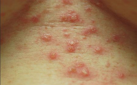 At 1 week postpartum, a 32-year-old woman presents with an itchy rash of sudden onset. Famciclovir, 500 mg bid, is prescribed, but the rash persists.