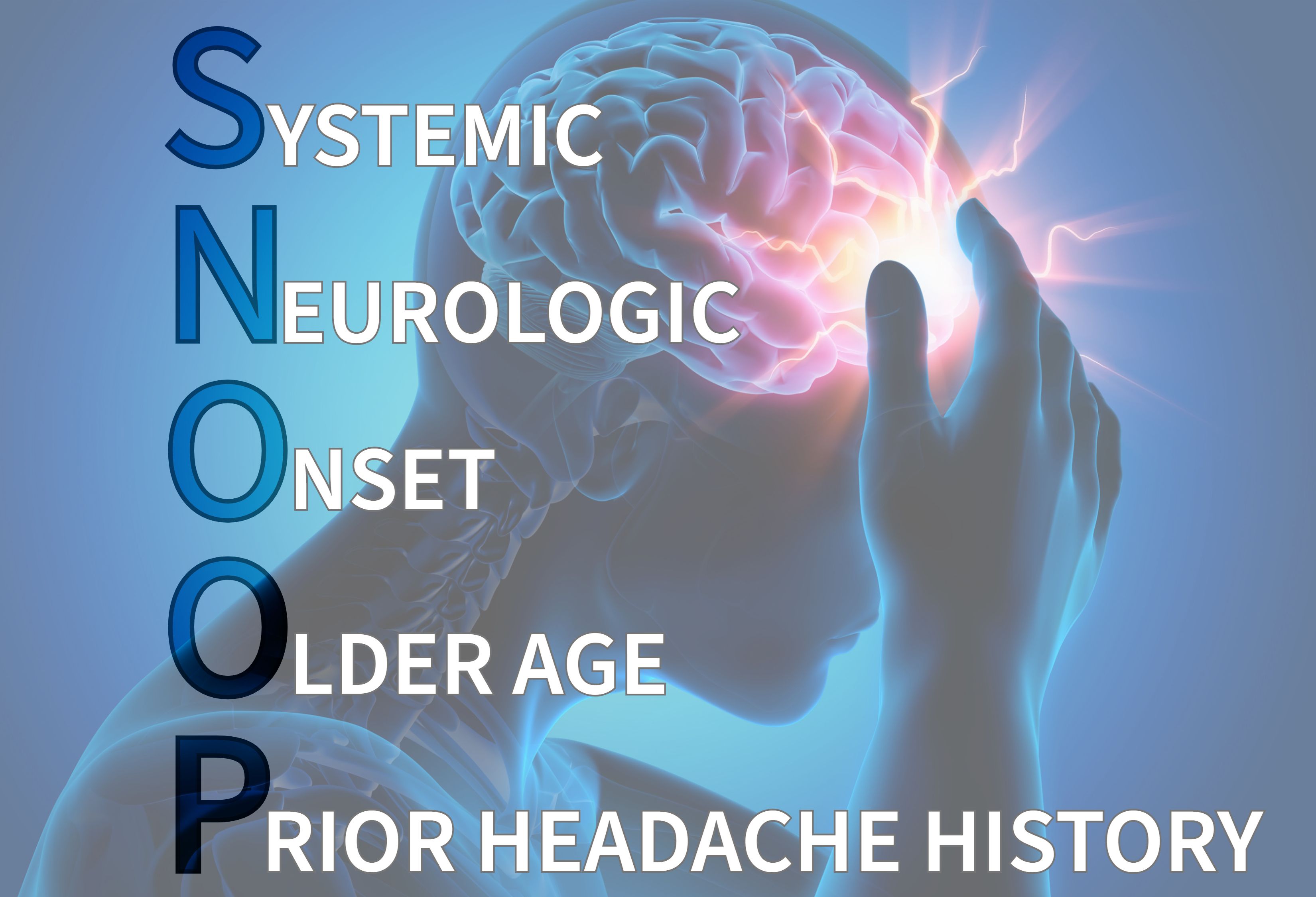If you chose C, congratulations, for SNOOP has proven itself very useful since the American Headache Society brought it out a dozen years ago. SNOOP is the most useful mnemonic in headache medicine, and one well worth committing to memory. SNOOP helps the busy clinician remember the hallmarks of secondary headaches – it facilitates medical decision making, and informs us of when to relax and when to sweat in the face of an unusual headache.