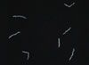 The dark-field examination shows typical Treponema palladium spirochetes. This finding in a patient with a history of multiple sex partners and a single painless, clean-cut ulcer with indurated base and rubbery, nontender inguinal adenopathy on the ipsilateral side points to a diagnosis of primary syphilis, A.