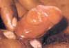 History. The patient had sexual relations with an unknown partner about 3 weeks earlier. The lesion started as a red papule that quickly eroded to form a painless ulcer with serous discharge; it was associated with asymptomatic swelling in the groin.