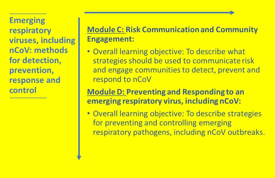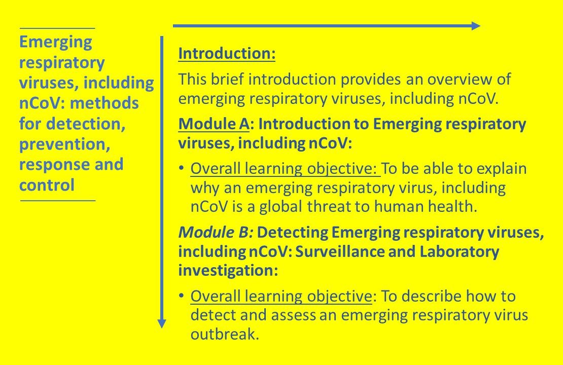 As described on the course introduction, the course "provides a general introduction to nCoV and emerging respiratory viruses and is intended for public health professionals, incident managers and personnel working for the United Nations, international organizations and NGOs."